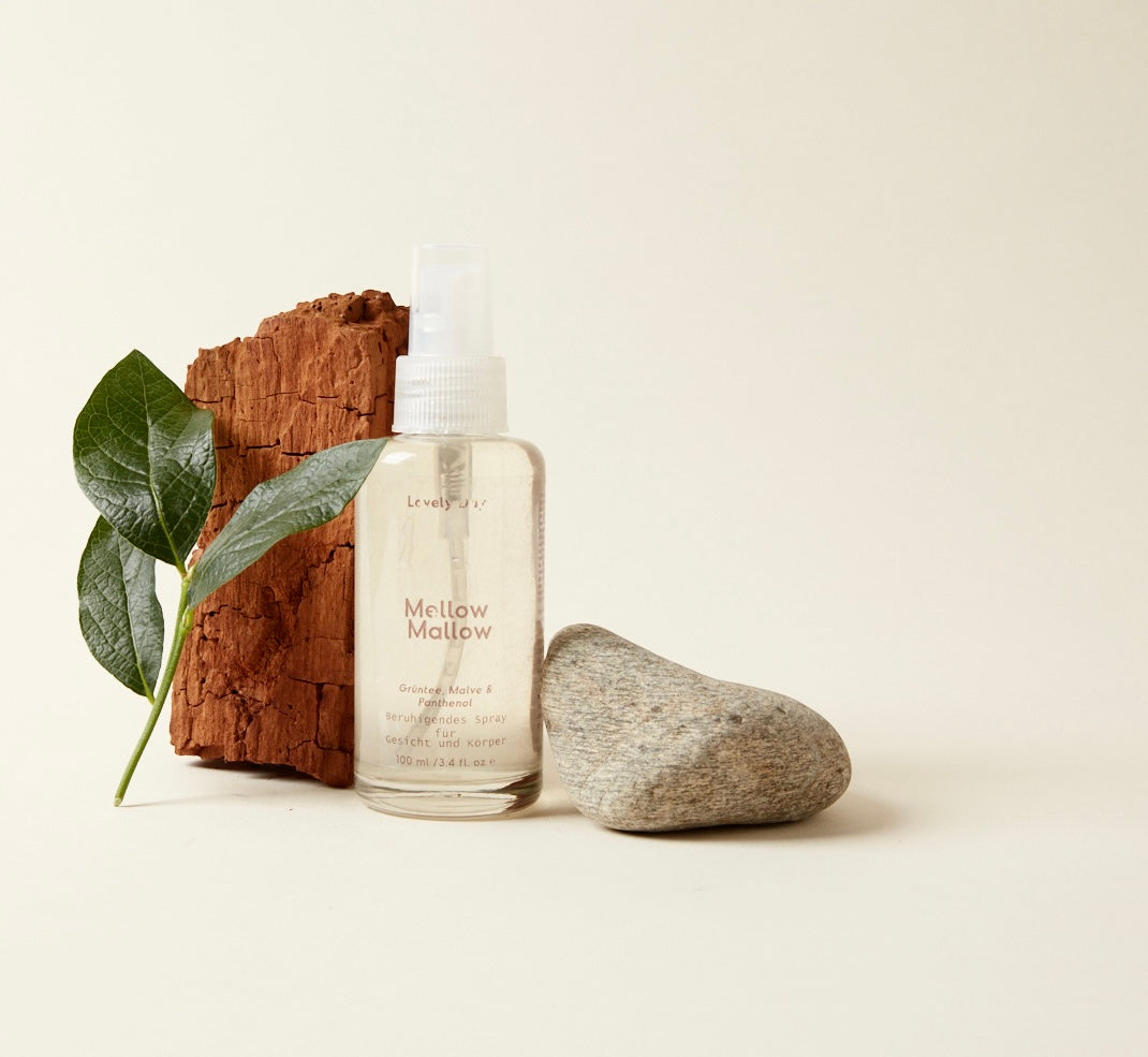 Mellow Mallow ist ein feuchtigkeitsspendendes Gesichts- und Körperspray auf Basis von beruhigendem Grünteehydrolat und Aloe Vera Gel. Panthenol, weißer Tee und Malvenblütenextrakt kühlen und regenerieren Deine Haut nach dem Duschen, Baden, Sonnenaufenthalten oder einfach zwischendurch. Mellow Mallow ist frei von ätherischen Ölen und duftet natürlich floral mit einer frischen Teenote. Eignet sich auch hervorragend als beruhigender Toner für sensible Haut oder als Abwechslung zum Hyaluron & Bloom Toner in den Sommermonaten. Einfach die gewünschten Körperpartien benetzen und relaxen!